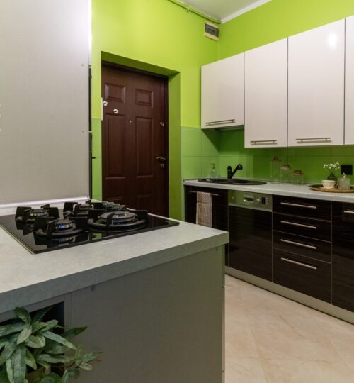 Na powierzchni 34,5m2 zjadują się: w pełni wyposażona kuchnia ( z meblami i sprzetem AGD ), duża łazienka z wanną i prysznicem oraz przestronny salon. Jednostkę grzewczą w mieszkaniu stanowi dwufunkcyjny piec gazowy Viessmann. Dodatkowo mieszkanie wyposażenio w stację uzdatniania wody. W trakcie kilka lat temu przeprowadzonego remontu w mieszkaniu wymieniono kompleksowo instalację elektryczną oraz wod-kan.